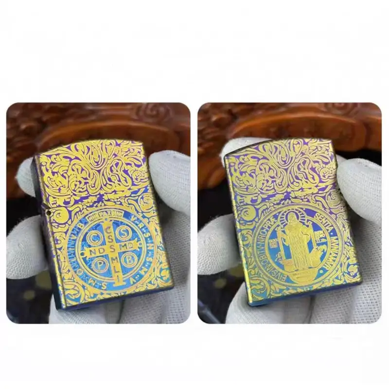 Worldwide requested Constantine design carved on a Genuine Zorro classic pure titanium comes packaged in a gift box. This ultra light, high quality, wind/ water sealed lighter can be used with both butane and kerosene Zorro or Zippo liners. For optimal performance, fill with Zorro or Zippo lighter fuel.