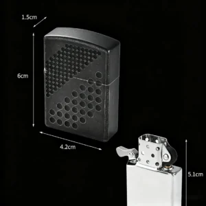 Durable pure titanium classic black color lighter with a random design on the surface comes packaged in a gift box. This ultra light, high quality, wind/ water sealed lighter can be used with both butane and kerosene Zorro or Zippo liners. For optimal performance, fill with Zorro or Zippo lighter fuel.