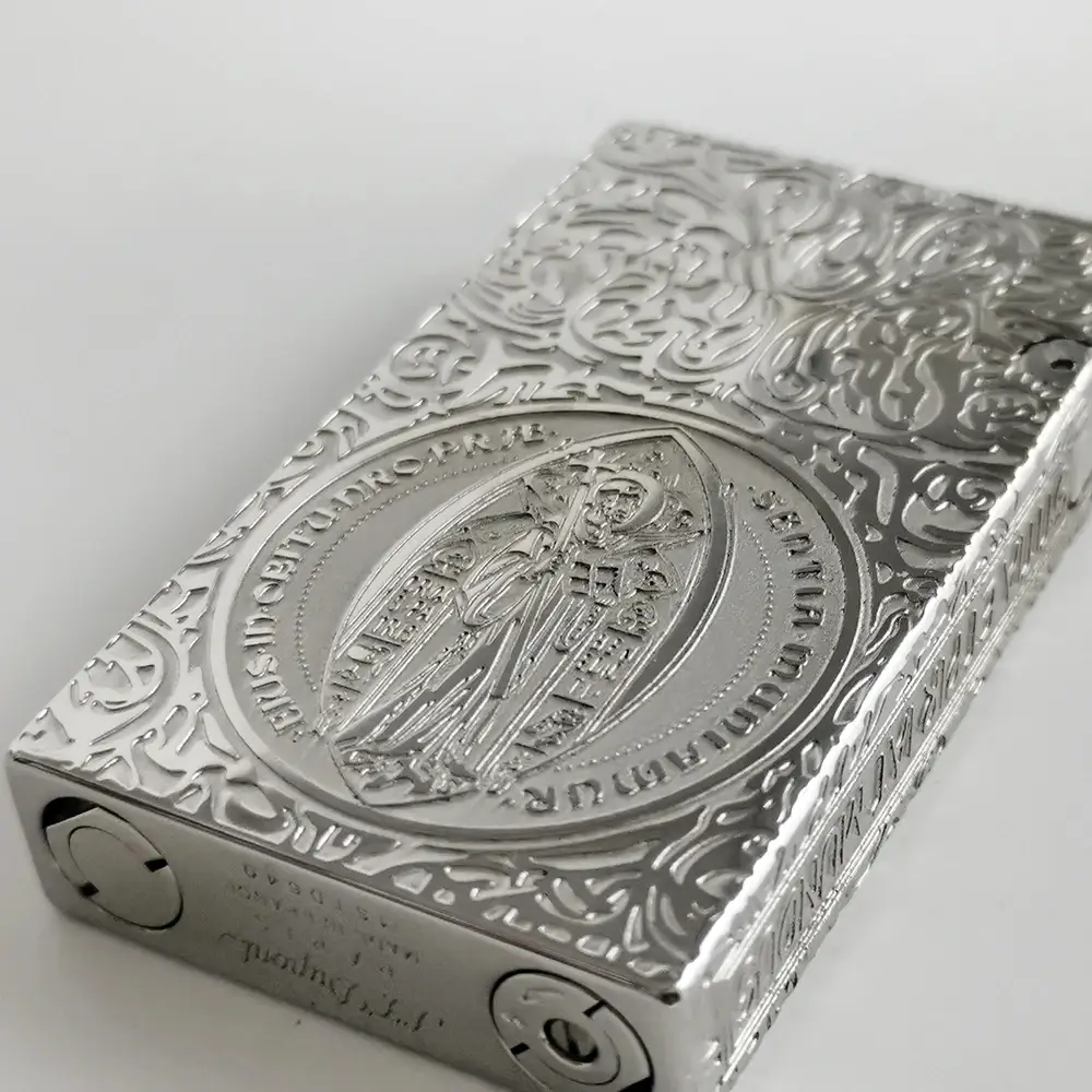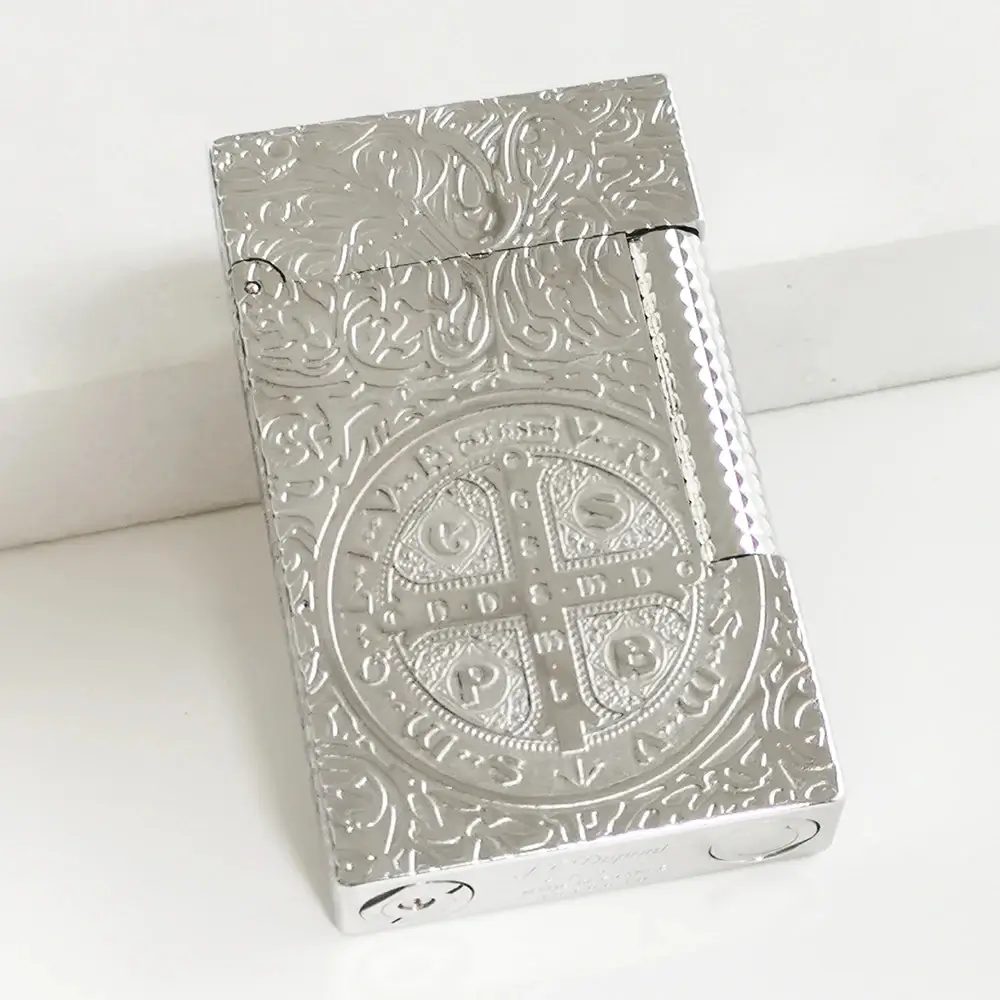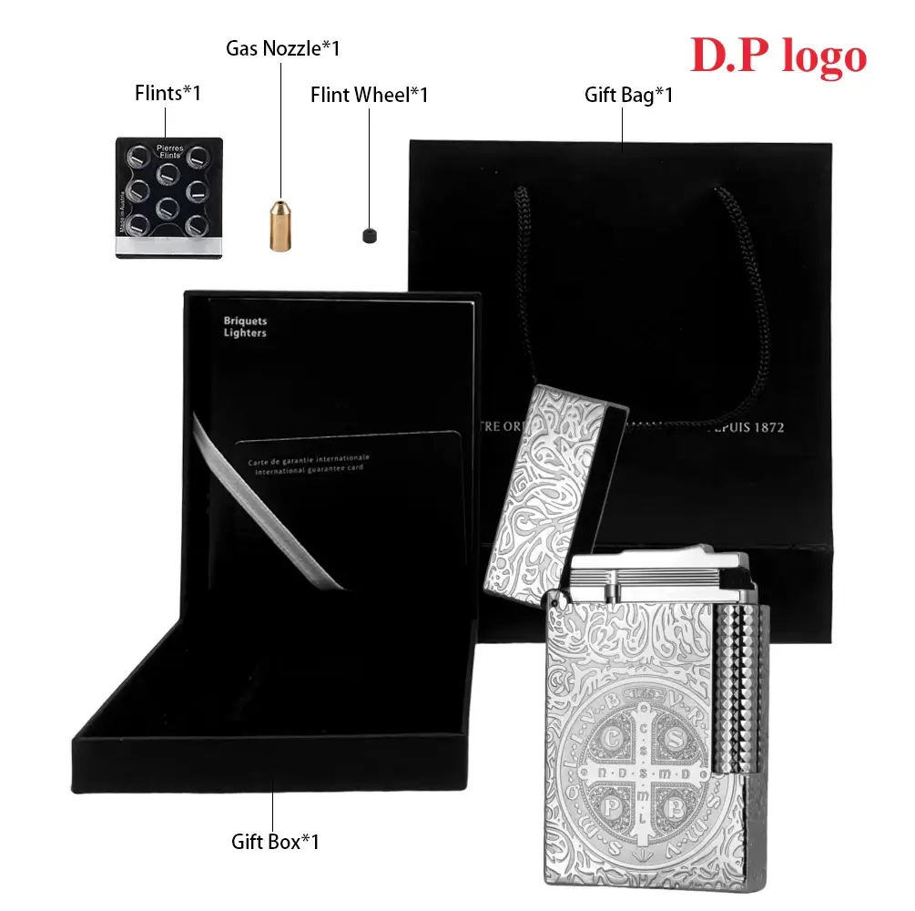 S.T. Dupont style luxury cigarette lighter crafted from 100% pure brass comes packaged in a gift box. This high end premium lighter offers timeless elegance and outstanding durability with perfect weight feeling. Enjoy the iconic bright ping sound with every opening an unmistakable mark of true sophistication that lights up your everyday moments. Now you can design your own logo for a unique gift or personal touch. For optimal performance, fill with Zorro or Zippo butane gas.