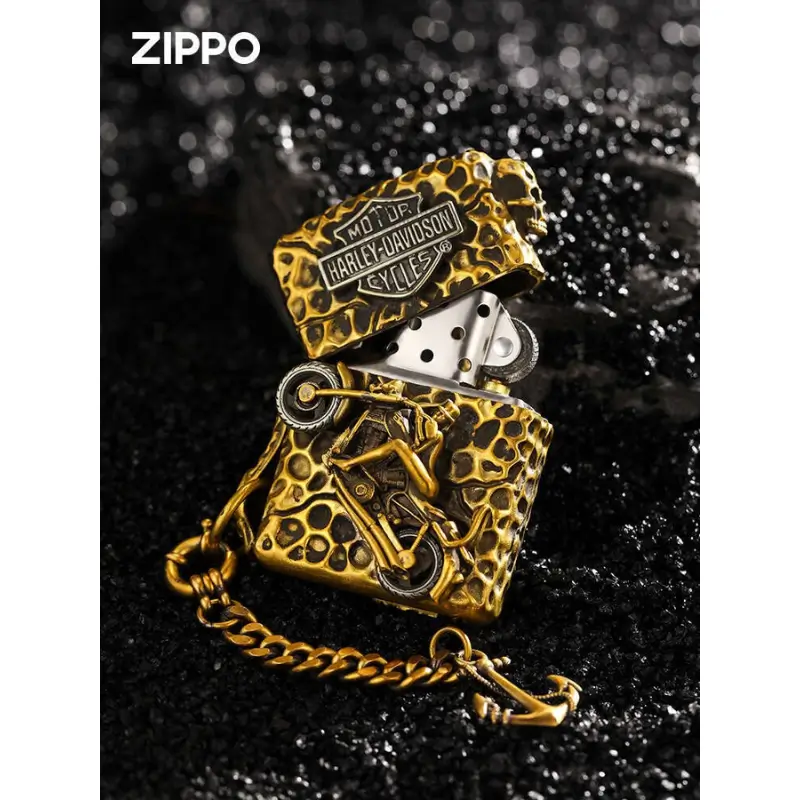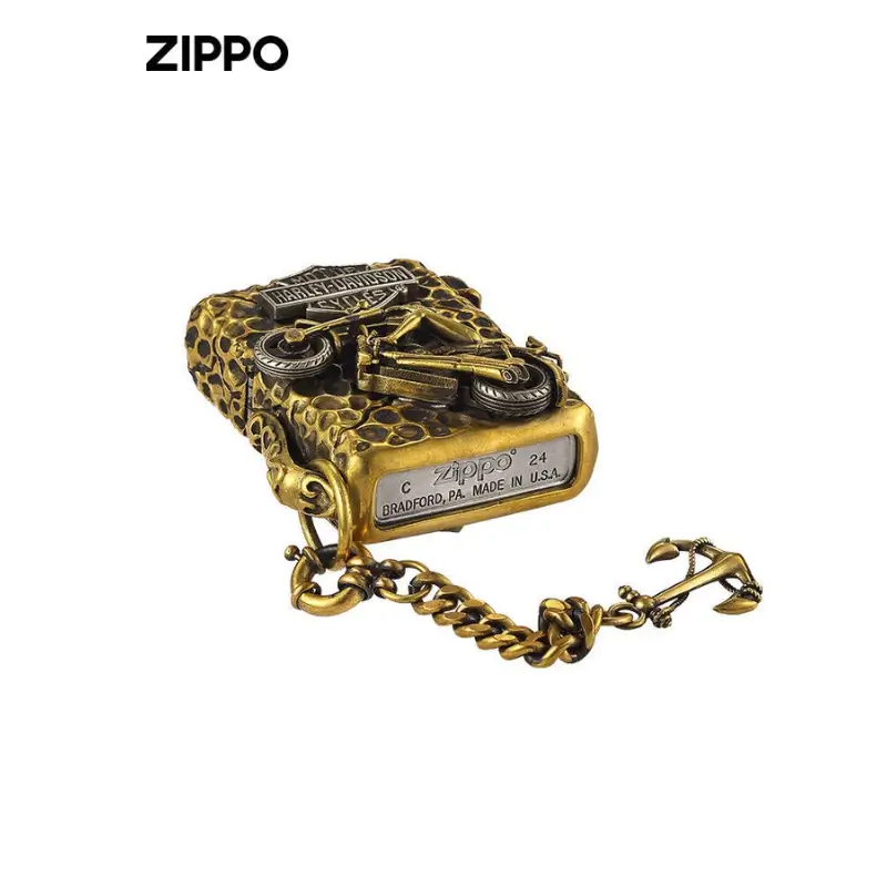 Genuine Zippo Harley-Davidson Motorcycles custom lighter is made with brass comes packaged in a Zippo gift box. This Zippo lighter case can be used with both butane and kerosene Zorro or Zippo liners. For optimal performance, fill with Zorro or Zippo lighter fuel.
