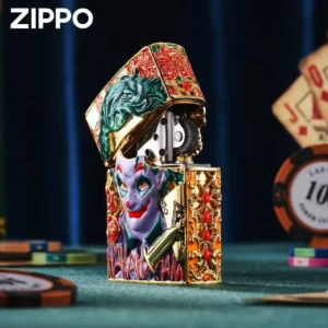 Inspired by legendary joker character in DC movies. Genuine Zippo customizations are made with pure brass comes packaged in a gift box. This colorful lighter case can be used with both butane and kerosene Zorro or Zippo liners. For optimal performance, fill with Zorro or Zippo lighter fuel.
