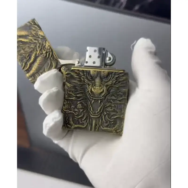 Genuine Zorro gigantic 593S model old vintage look made with pure brass comes packaged in a gift box. This all sides 3D engraved heavy- duty armor shell can be used with suitable Zorro kerosene movements. For optimal performance, fill with Zorro or Zippo lighter fuel.