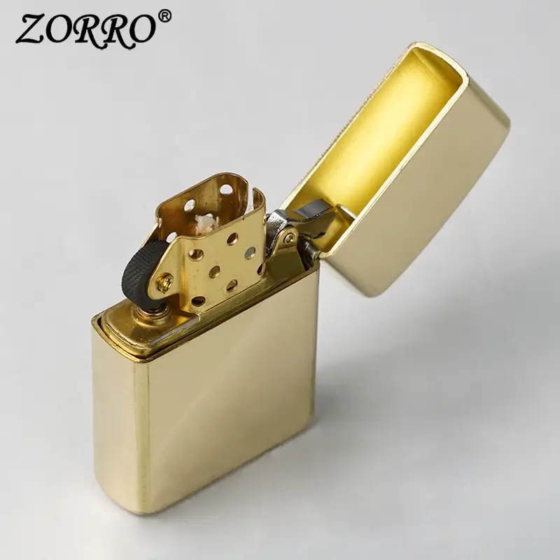 Genuine Zorro 902 solid brass lighter, as classic as they come, the always- elegant high polish brass lighter is buffed to a dazzling lustrous finish. With its sophisticated finish, this is a global favorite Zorro lighter whether is a natural state or customized for a personal touch. Comes packaged in a Zorro gift box. This high quality wind/ water sealed lighter can be used with both butane and kerosene Zorro or Zippo liners. For optimal performance, fill with Zorro or Zippo lighter fuel.