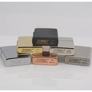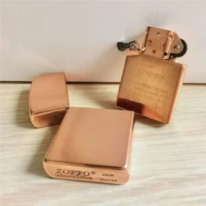 Genuine Zorro 902 solid copper lighter, as classic as they come, the always- elegant high polish copper lighter is buffed to a dazzling lustrous finish. With its sophisticated finish, this is a global favorite Zorro lighter whether is a natural state or customized for a personal touch. Comes packaged in a Zorro gift box. This high quality wind/ water sealed lighter can be used with both butane and kerosene Zorro or Zippo liners. For optimal performance, fill with Zorro or Zippo lighter fuel.
