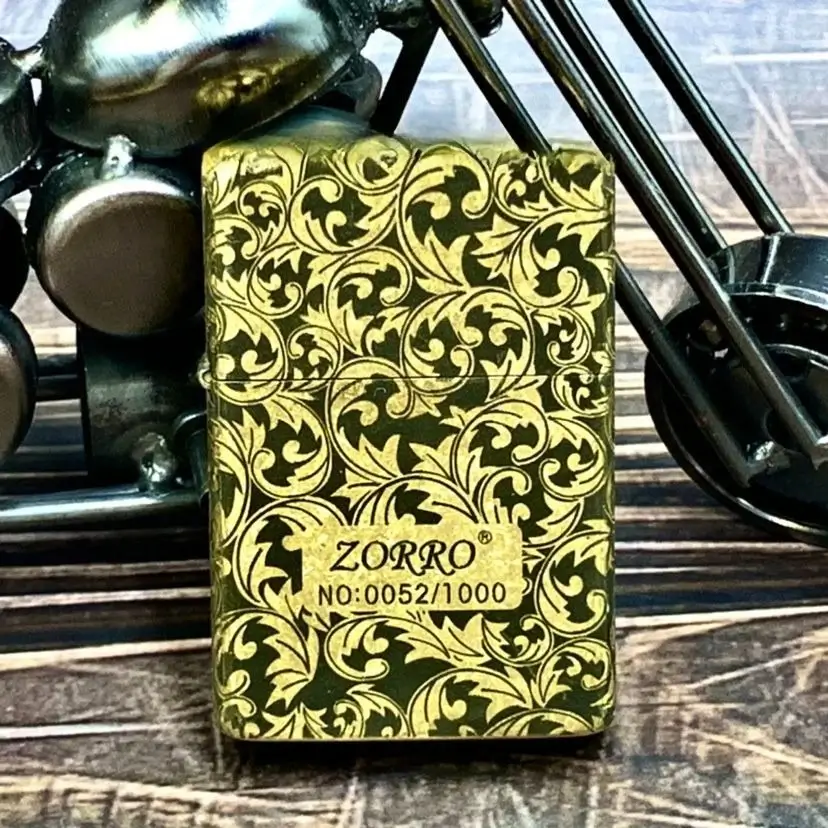 Genuine Zorro 902S model customizations are made with pure brass comes packaged in a gift box. This high quality wind/ water sealed lighter can be used with both butane and kerosene Zorro or Zippo liners. For optimal performance, fill with Zorro or Zippo lighter fuel.