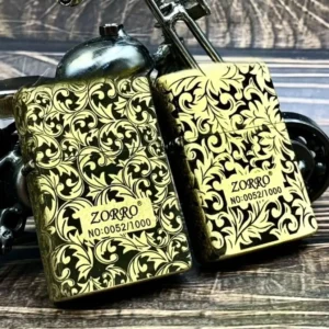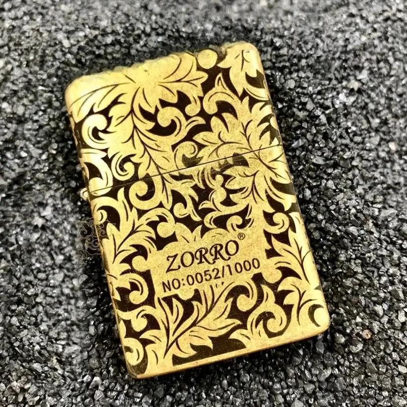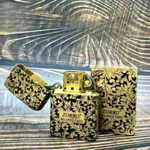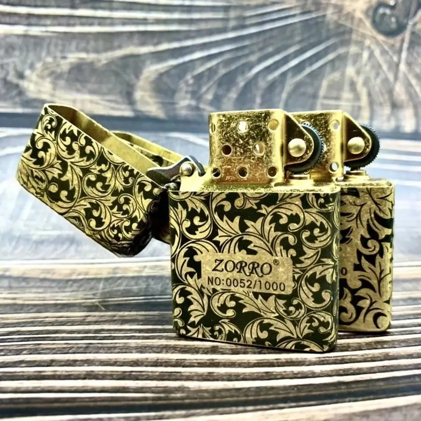 Genuine Zorro 902S model customizations are made with pure brass comes packaged in a gift box. This high quality wind/ water sealed lighter can be used with both butane and kerosene Zorro or Zippo liners. For optimal performance, fill with Zorro or Zippo lighter fuel.