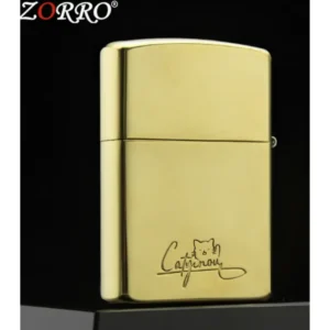 Genuine Zorro 902S model customizations are made with pure brass comes packaged in a gift box. This high quality wind/ water sealed lighter can be used with both butane and kerosene Zorro or Zippo liners. For optimal performance, fill with Zorro or Zippo lighter fuel.