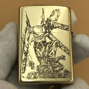 Genuine Zorro 902S model “Chainsaw man” Japanese anime customizations are made with solid brass comes packaged in a gift box. This high quality wind/ water sealed lighter can be used with both butane and kerosene Zorro or Zippo liners. For optimal performance, fill with Zorro or Zippo lighter fuel.