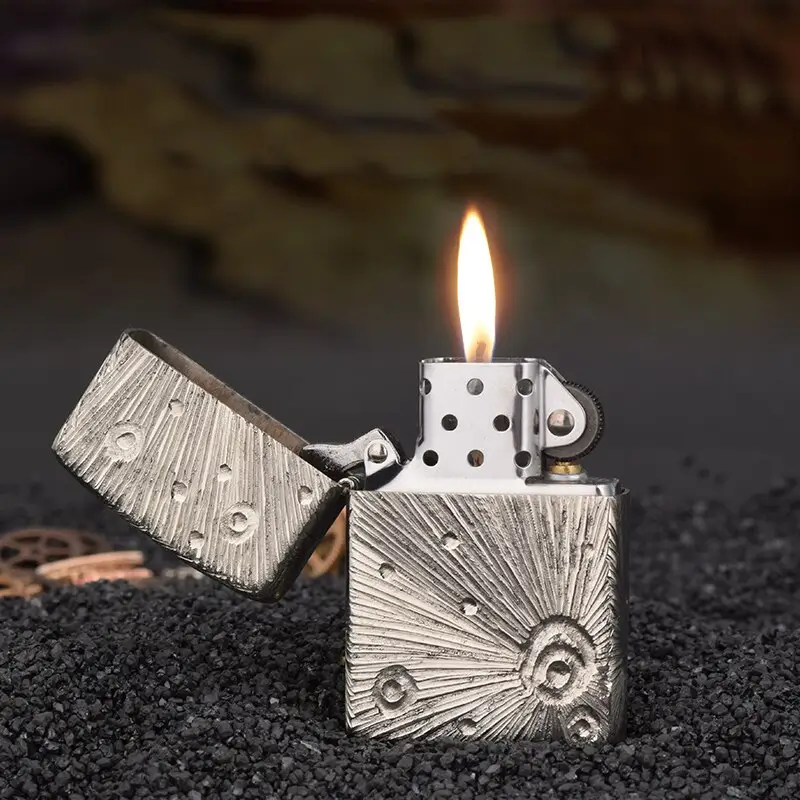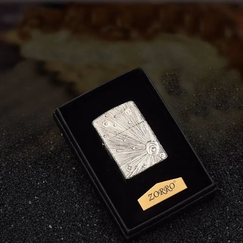 Genuine Zorro 902S model all 5 sides 3D customizations are made with white copper comes packaged in a gift box. This high quality wind/ water sealed lighter can be used with both butane and kerosene Zorro or Zippo liners. For optimal performance, fill with Zorro or Zippo lighter fuel.