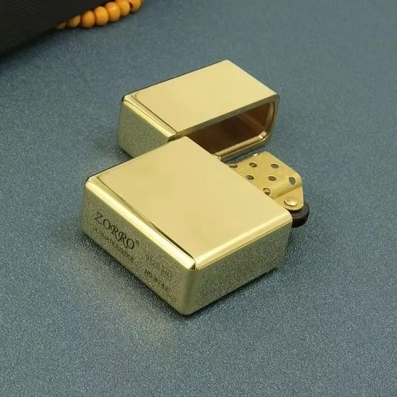 Genuine Zorro 912S model heavy duty armor lighter with polished brass comes packaged in a Zorro large gift box. This high end armor shell can be used with both butane and kerosene Zorro or Zippo liners. For optimal performance, fill with Zorro or Zippo lighter fuel.