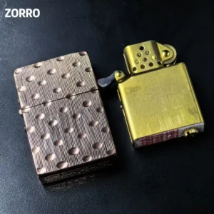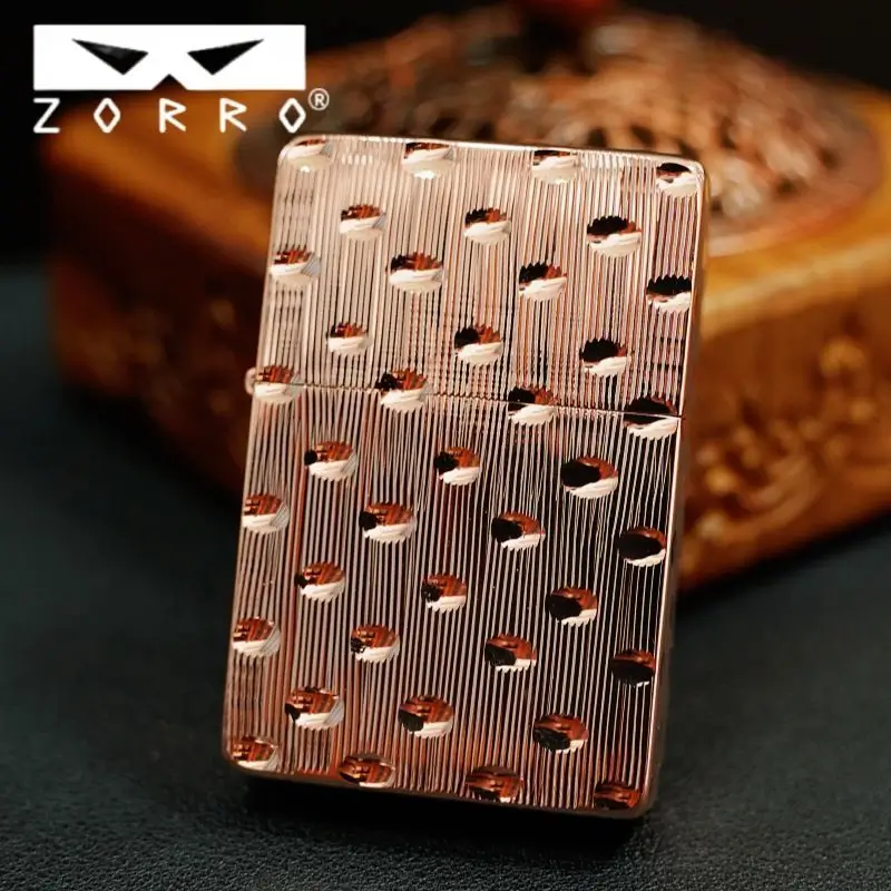 Genuine Zorro 917 model 3D carved lighter is made with purple copper comes packaged in a gift box. This high quality wind/ water sealed lighter can be used with both butane and kerosene Zorro or Zippo liners. For optimal performance, fill with Zorro or Zippo lighter fuel.
