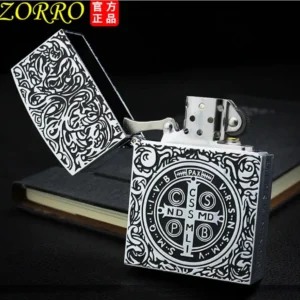 Genuine Zorro extra large 911 model engraved with iconic Constantine design. This is a 1:1 size edition lighter from Constantine movie. Polished look made with pure brass comes packaged in a gift box. This all sides 3D engraved heavy- duty armor shell can be used suitable Zorro kerosene movements. For optimal performance, fill with Zorro or Zippo lighter fuel.