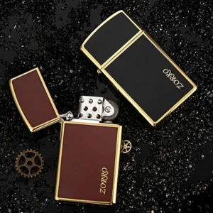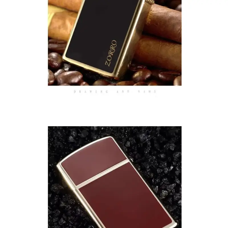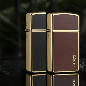 Genuine Zorro narrow edition open flame kerosene lighter with red or black color comes packaged in a gift box. This classic grinding wheel ignition lighter can be customized with letters as your preference. For optimal performance, fill with Zorro or Zippo lighter fuel.