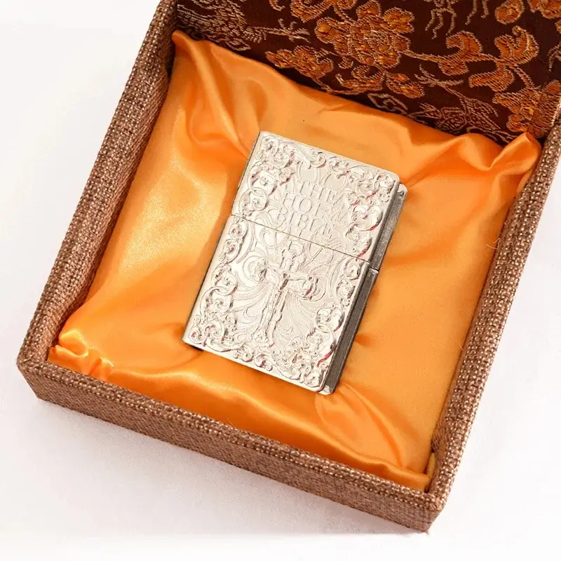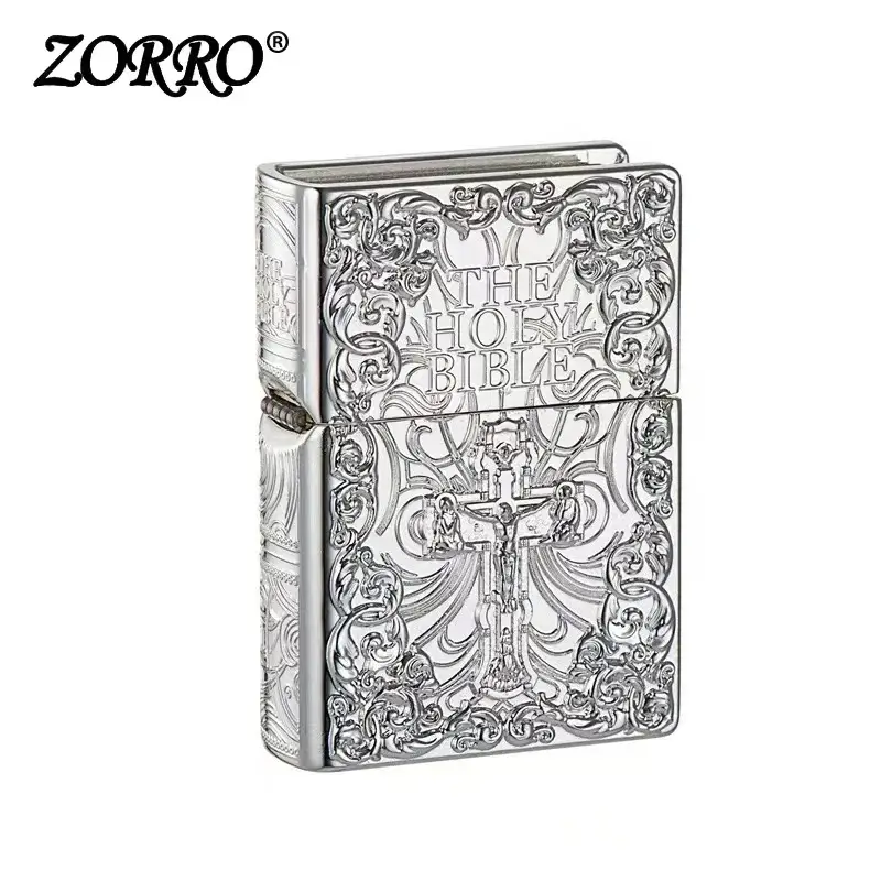 Genuine Zorro embossed brass armor lighter with high polished bible cross body comes packaged in a gift box. This creative armor shell can be used with both butane and kerosene Zorro or Zippo liners. For optimal performance, fill with Zorro or Zippo lighter fuel.
