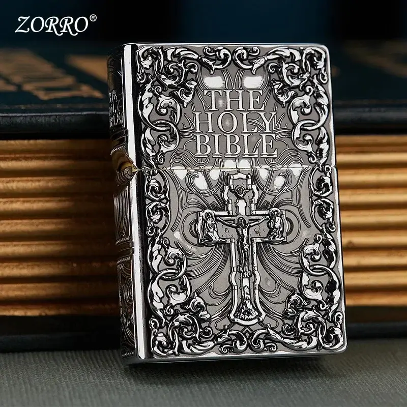 Genuine Zorro embossed brass armor lighter with high polished bible cross body comes packaged in a gift box. This creative armor shell can be used with both butane and kerosene Zorro or Zippo liners. For optimal performance, fill with Zorro or Zippo lighter fuel.